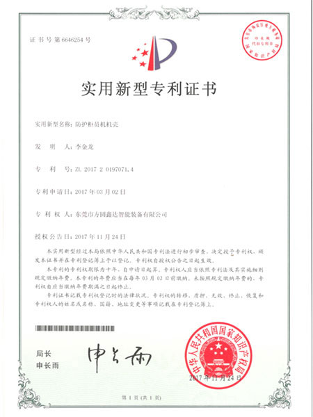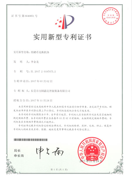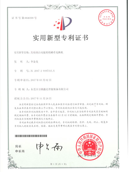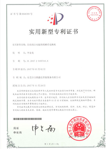 Utility model patent certificate